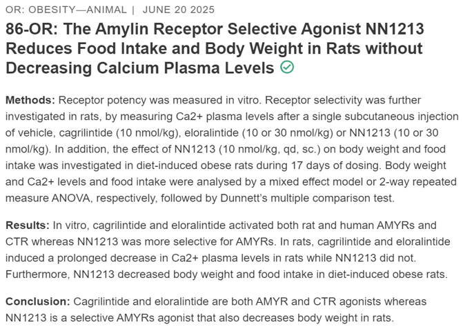 诺和获得也在积极开发偏向性Amylin,选择性优于礼来Eloralintide。