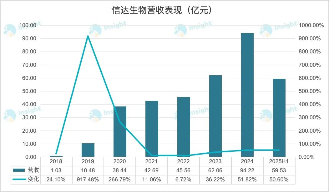 今年上半年,信达继续保持高增长态势,营收大涨 51%,达到了 59.53 亿元。按照这一势头,它全年营收将首次突破百亿人民币大关,正式跻身创新药企百亿俱乐部。