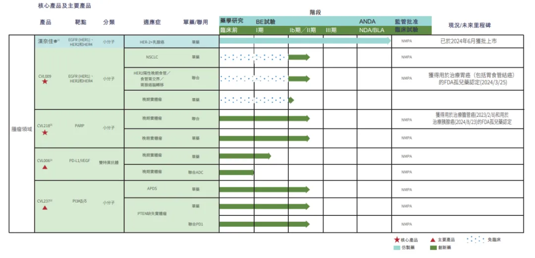 甫康生物在研的两款核心产品为:2.4 类改良新药 CVL009,正在针对携带罕见 HER1 突变的 NSCLC、HER2 阳性胃癌脑转移患者以及与卡培他滨联合疗法进行Ⅱ期临床试验;以及 CVL218,一种新型第二代高选择性 PARP 抑制剂,主要用于治疗晚期实体瘤。