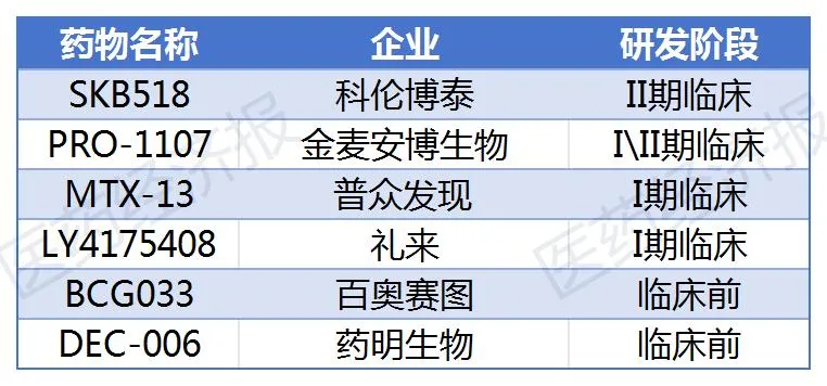 全球部分在研PTK7靶向药