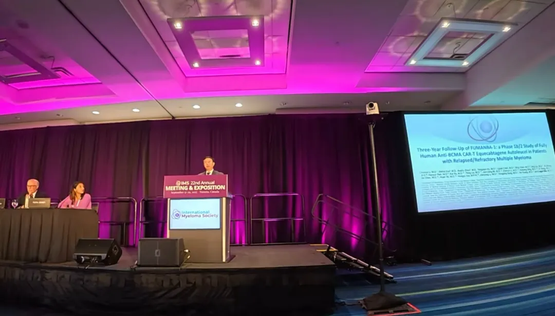 我们非常高兴在本届IMS年会上公布伊基奥仑赛注射液FUMANBA-1研究的3年随访数据,其结果令人振奋。伊基奥仑赛凭借适中的抗原亲和力,促使CAR-T细胞与肿瘤细胞实现快速结合与解离,有助于快速起效并强力清除肿瘤,从而使复发难治性多发性骨髓瘤(R/R MM)患者实现深度缓解。同时,作为人源CAR-T,其免疫原性较低,在维持低耗竭表型的基础上,可实现较长存续时间,持续发挥抗肿瘤作用,可延长患者生存。特别值得注意的是,伊基奥仑赛在CAR-T初治患者中的中位无进展生存期(mPFS)达到35.9个月,这表明该疗法能够为患者提供更长的无治疗间隔,显著改善其生存质量1,3。