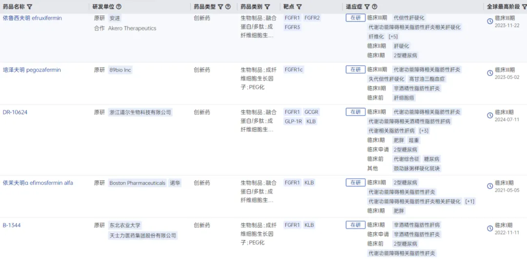 全球在研FGF21受体激动剂竞争格局