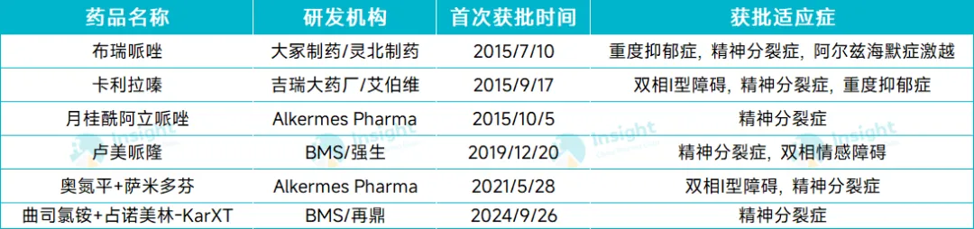 多家国内药企将目光瞄准了这一领域中的重磅炸弹,包括礼来的奥氮平,BMS/大冢制药的阿立哌唑、强生的利培酮、大冢制药/灵北制药的布瑞哌唑等。