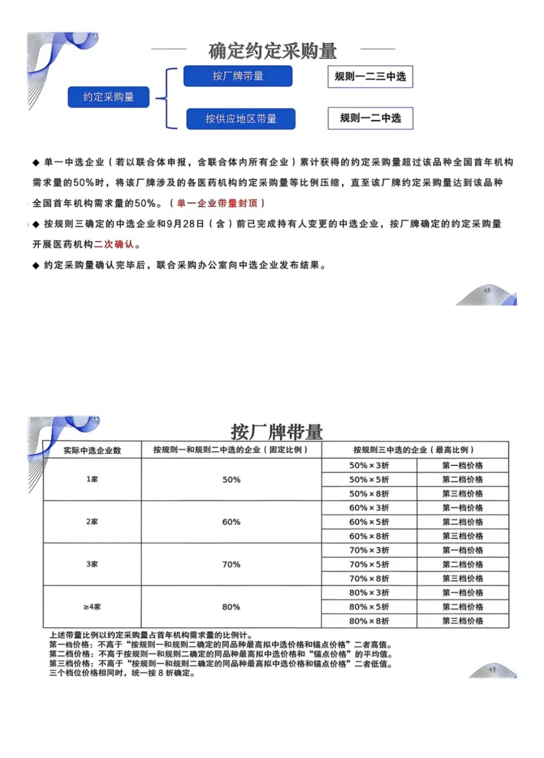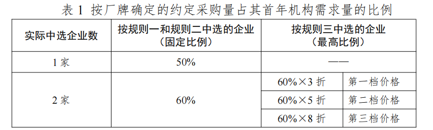从按厂牌确定的约定采购量占其首年机构需求量的比例来看,单一企业获量封顶50%。这为中小中选药企的发展留存了一定的市场空间,避免了头部药企的垄断。
