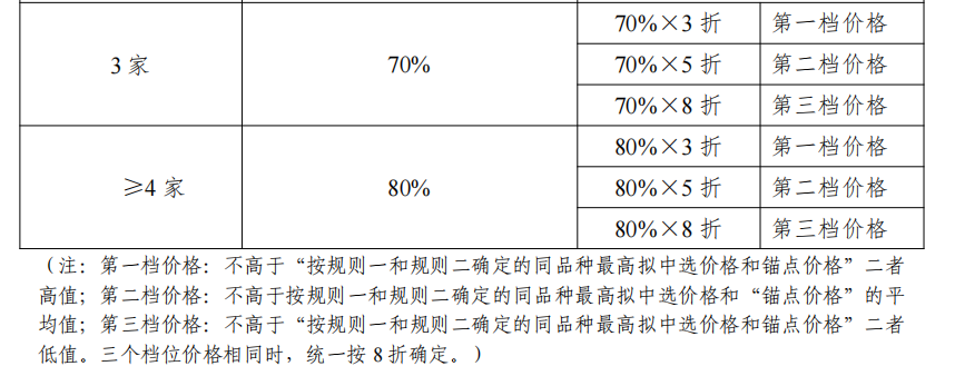 产品的拟中选可以通过三个规则,规则一明确有效申报入围企业满足任一价格条件即可获拟中选资格。