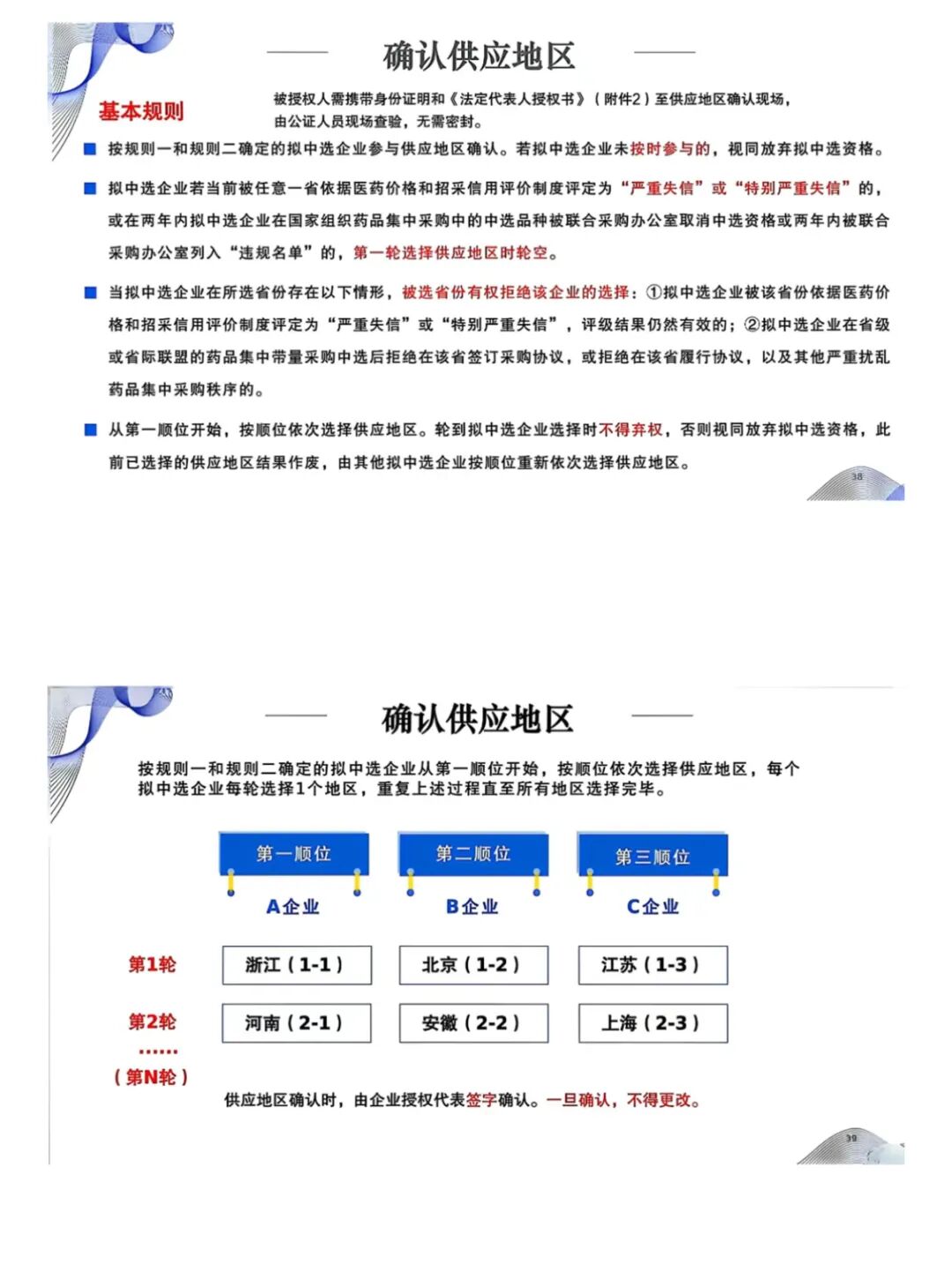 根据解读,中选药品确定步骤依次为:确定入围企业、确定拟中选企业、供应地区确认、拟中选结果公示、中选药品确定、约定采购量确定。