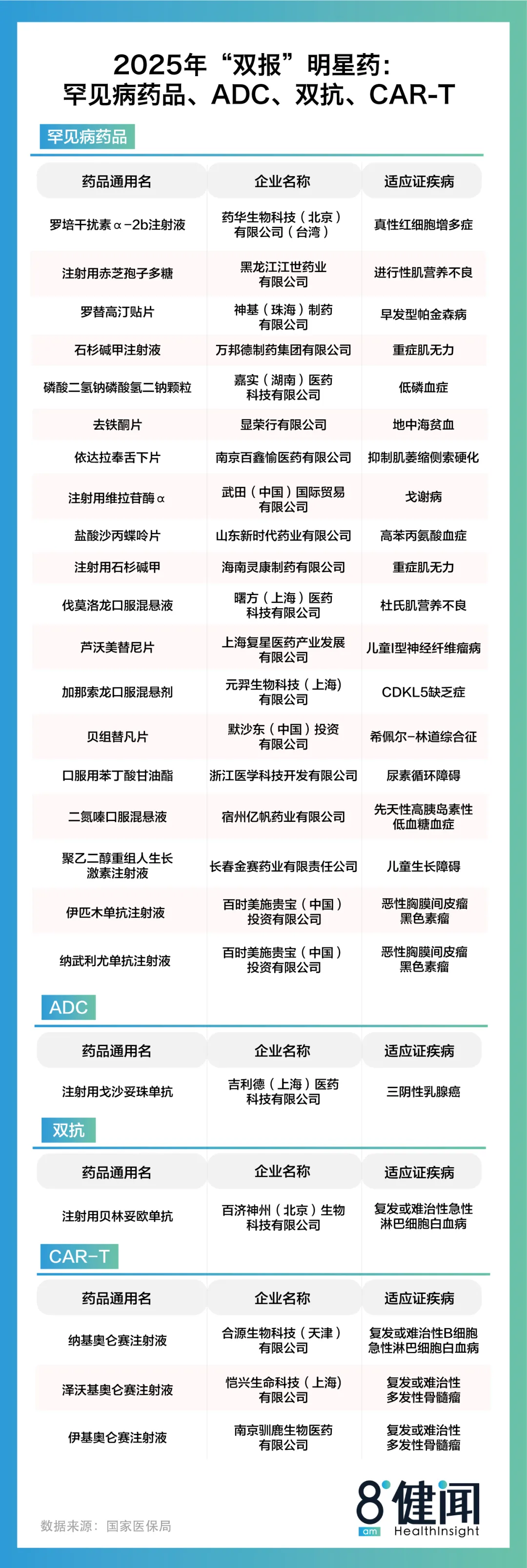 图1:2025年“双报”明星药:罕见病药品、ADC、双抗、CAR-T