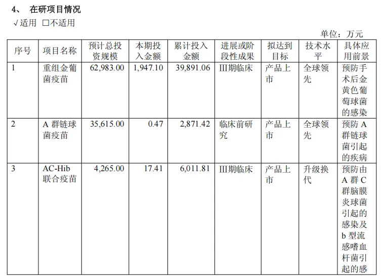 管线布局方面,公司确立了“传统疫苗升级换代+创新疫苗开发”双轮驱动的研发策略,聚焦“成人疫苗”和“超级细菌疫苗”,形成了“阶梯有序、重点突破、多产品储备”的产品研发格局。