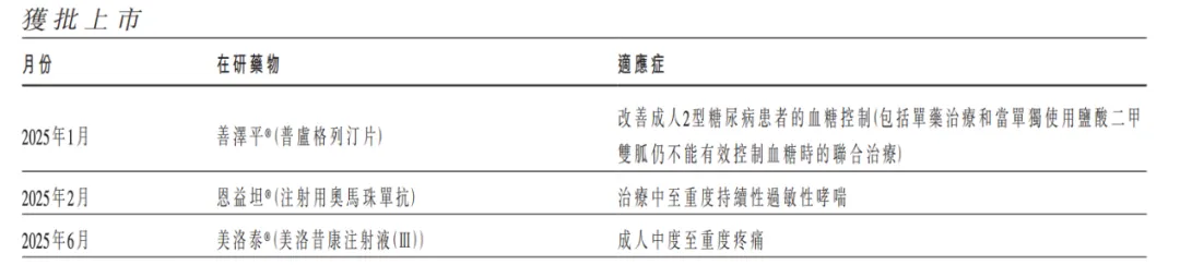 研发成果正逐步落地。今年上半年,石药有3款创新药获批上市,包括用于改善成人2型糖尿病患者血糖控制的善泽平、治疗成人中度至重度慢性疼痛的美洛泰,以及恩益坦(新增“中度至重度持续性过敏性哮喘”适应证,进一步扩大患者覆盖范围)。另有司美格鲁肽注射液等5款产品的上市申请获受理,若这些产品顺利上市,将进一步丰富石药集团的创新药管线,为业绩增长提供支撑。
