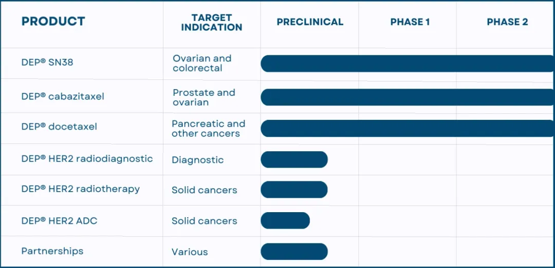 此外,公司还在研发阶段布局了 DEP® 放射性药物及 DEP® ADC等候选产品。