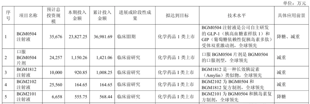 此外,公司还布局了复方制剂,包括BGM2102注射液(BGM0504+BGM1812,GLP-1R/GCGR/AmylinR 三靶点制剂)、BGM2101(BGM0504 + 一周一次胰岛素)