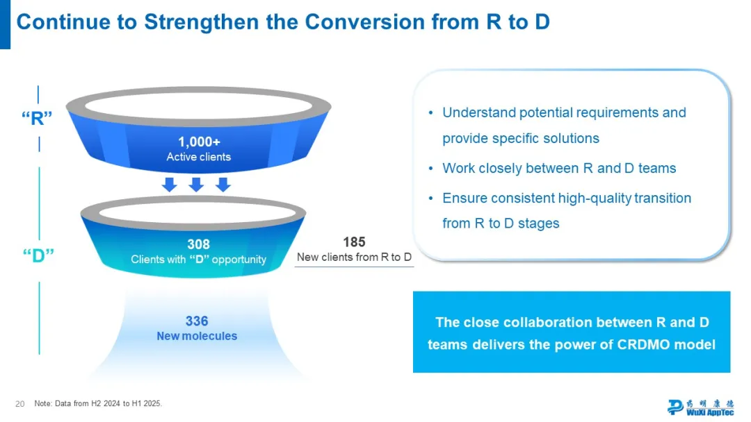 此外,R端的存在叠加“跟随客户、跟随分子”战略,还能帮助药明康德更早洞察创新趋势,让后端(D端、M端)提前为创新浪潮做好准备,显著增强了承接能力。