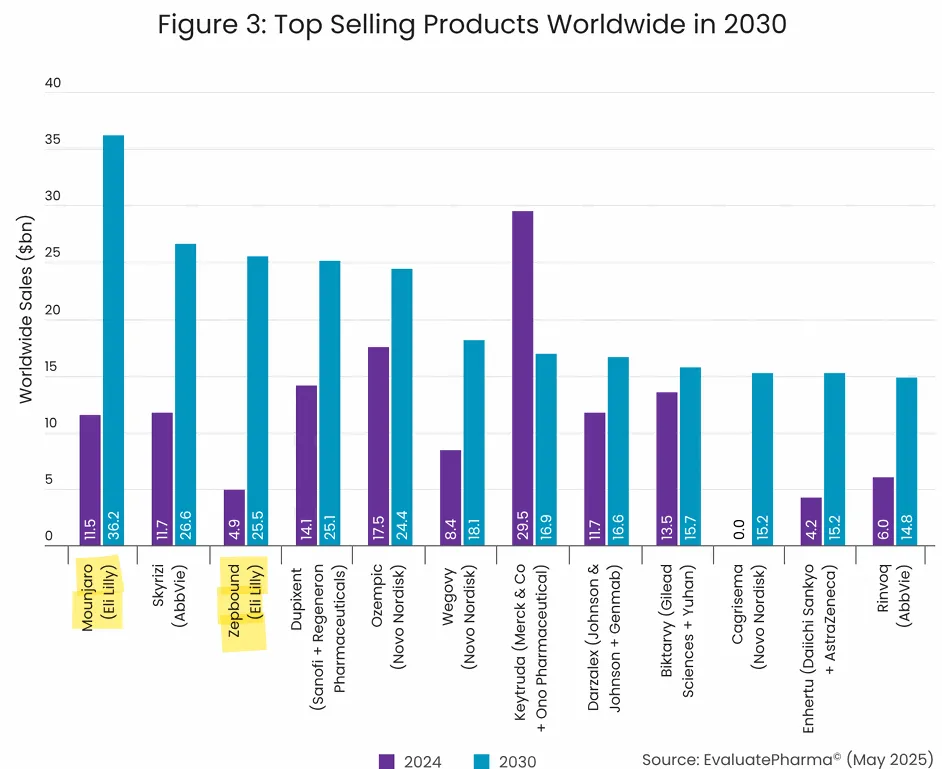 但就在这一片混沌中,一条最强主线已杀出重围,到2030年,礼来将强势碾压所有对手,登顶全球药企营收榜!