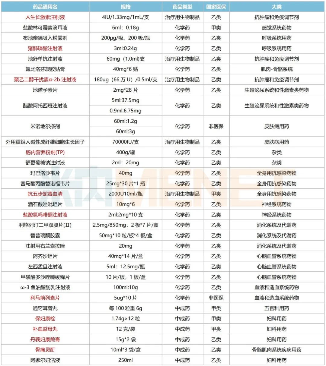 32个为独家品种(含独家剂型),其中恒瑞医药、拜耳以3个品种并列领跑,人福医药、诺和诺德、诺华等均有2个品种在列,济川、海思科、方盛制药、科伦、南京正大天晴、石药等亦有品种在列。
