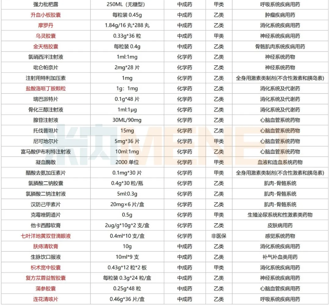 22个为独家品种(含独家剂型),包括佐力药业的乌灵胶囊、以岭药业的连花清咳片、雷允上的复方苁蓉益智胶囊、苏中药业的蒲参胶囊、千金药业的补血益母丸等畅销中成药。
