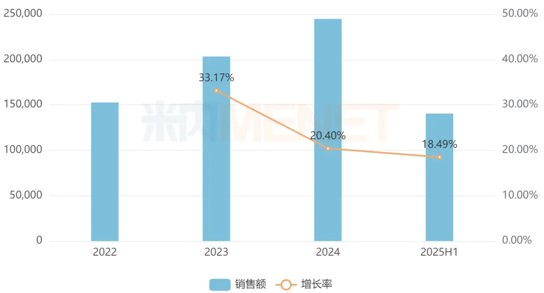 厦门特宝生物的聚乙二醇干扰素α-2b注射液是一款长效干扰素,用于治疗慢性乙型肝炎、慢性丙型肝炎等。米内网数据显示,该药近年来在中国三大终端六大市场的销售额均以两位数的增速增长,2024年其销售额超过24亿元,2025年上半年超过14亿元。