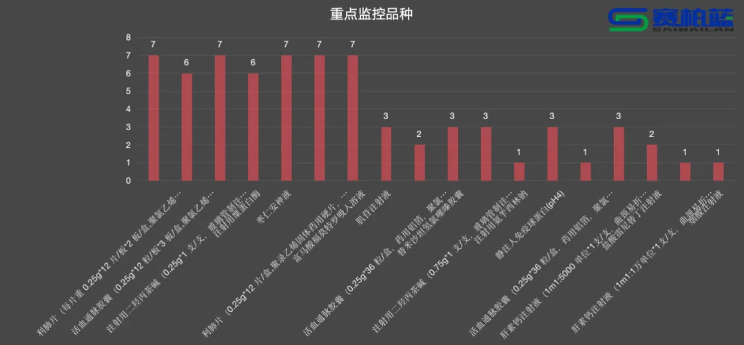 赛柏蓝梳理发现,今年发布的1-7月药品挂网公开议价采购监管品种名单中,累计有18个药品被重点监控。