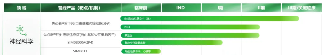 此外在研管线中,还有先必新治疗脑出血新适应症、脑卒中伴发脑水肿药物SIM0800(AQP4)等临床阶段项目,以及针对脑卒中心梗开发的SIM0811等临床前项目,来进行并发症干预,与先必新形成协同效应。