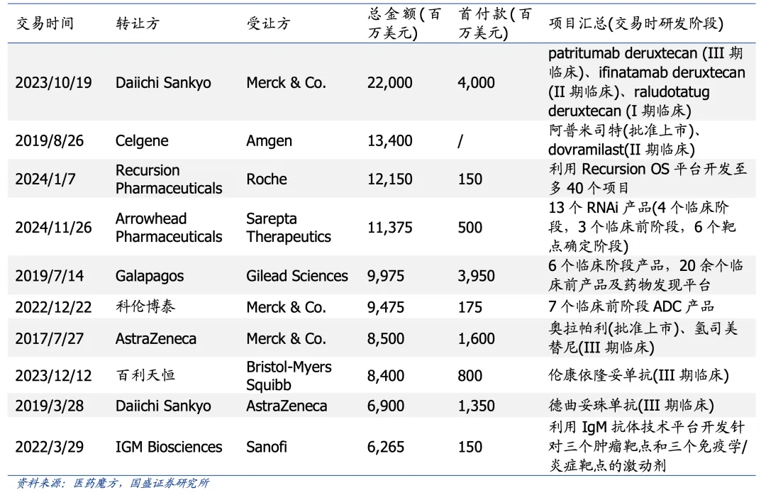 近10年全球医药交易Top10