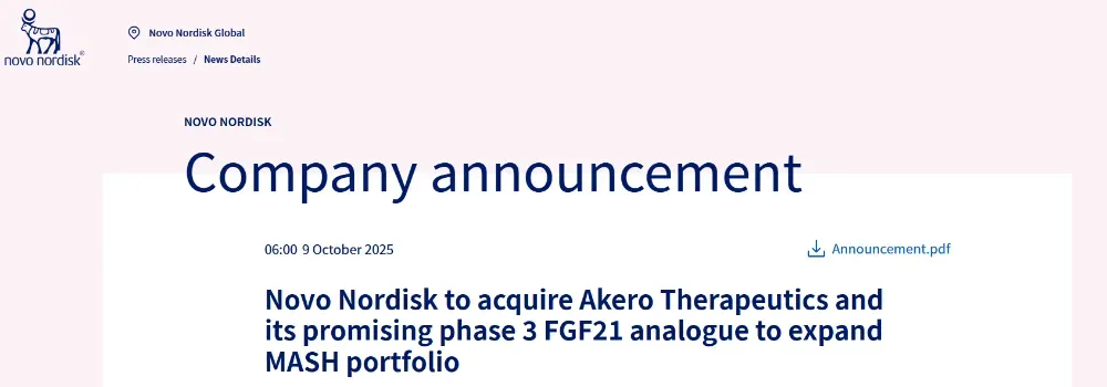 更为关键的是,诺和诺德目前手握约630亿美元并购资金,此次果断出手Akero,明确了其聚焦代谢疾病赛道、通过收购增强在研管线的意图。这不仅有助于提振投资者信心,更体现了新管理层在重组后让公司继续发展的决心。