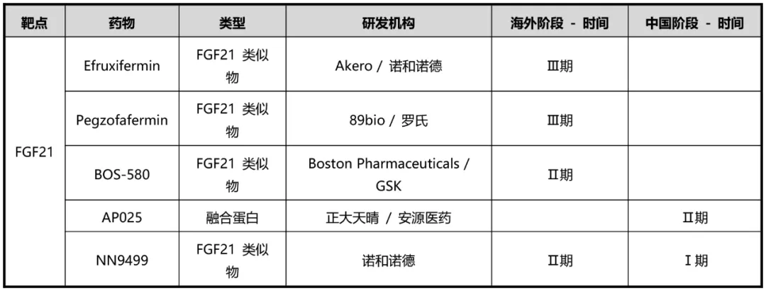 MAFLD/MASH赛道FGF21靶点代表管线/数据来源:PharmCube