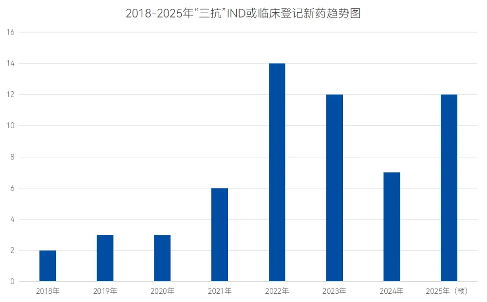 凭借多一个靶点结合位点的结构优势,三抗旨在实现更强的靶向特异性、更优的临床疗效与更低的脱靶毒性,从而被视为下一代免疫疗法的重点方向。