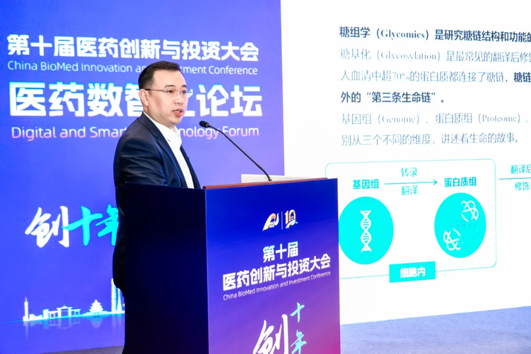 先思达(南京)生物科技有限公司董秘谢可辉和与会嘉宾分享了糖组学创新成果在药物开发与临床应用等领域的探索。他指出:糖组学(Glycomics)是研究糖链结构和功能的一门学科。血清中超70%的蛋白质都连接了糖链,糖链也是除核酸、蛋白以外的“第三条生命链”。基因组(Genome)、蛋白质组(Proteome)、糖组(Glycome)分别从三个不同的维度,讲述着生命的故事。他详细介绍了糖组检测技术平台GlyFace®和糖组数据分析平台GlySeer®在早筛早诊、个性化治疗和药物研发的实践和应用。伴随着糖组学相关技术的不断发展,未来将对疾病预防、诊断、治疗、筛查、评价、验证和健康管理等多个环节产生深远影响。