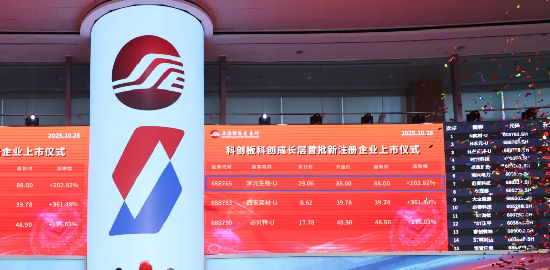 2025年10月28日上午,武汉禾元生物科技股份有限公司(股票名称:禾元生物;股票代码:688765)在上交所科创板挂牌上市,成为重组人白蛋白第一股。禾元生物是重启未盈利企业适用科创板第五套标准后首家上会企业、A股首例采用约定限售方式申购的新股,亦是科创成长层首批上市企业。