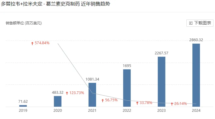 Apretude(卡替拉韦)则是 GSK 旗下另一款长效 HIV 注射疗法,作为全球首个获批的长效注射预防方案,Apretude 正快速打开市场,2025 年前三季度,该药销售额约为 4.09 亿美元,同比增长 63%,显示出强劲的增长势头。