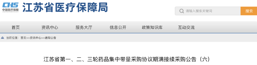 10月27日,江苏省医保局发布《江苏省第一、二、三轮药品集中带量采购协议期满接续采购公告(六)》,正式公布本次接续中选结果,共涉及194家企业324个产品(具体药品清单见文末)。