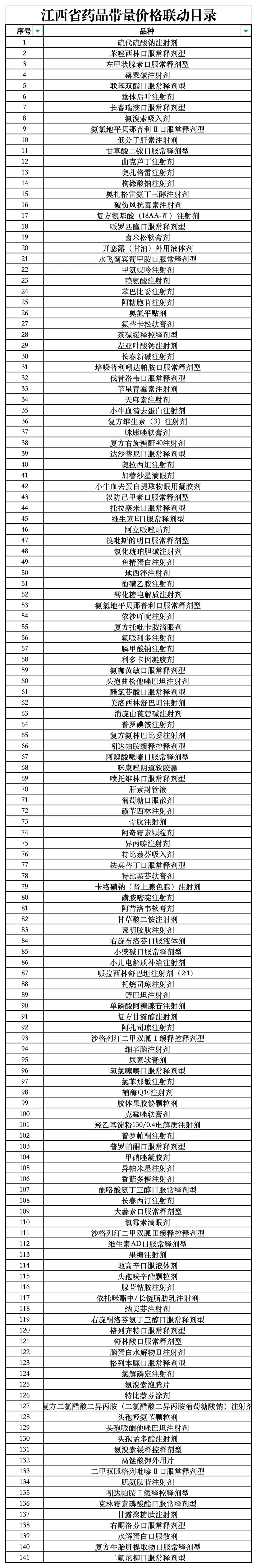 江西省药品带量价格联动目录
