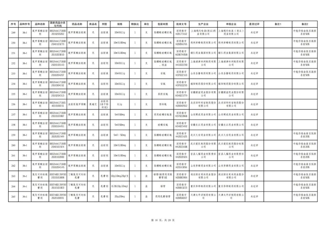 值得注意的是,有2个产品曾出现在拟中选名单中,最终却意外出局。一个是河北常山生化药业生产的过评品种达肝素钠注射液(0.2ml:5000AXaIU),另一个是河南科伦药业生产的未过评品种氯甲苯酸注射液(5ml:50mg)。