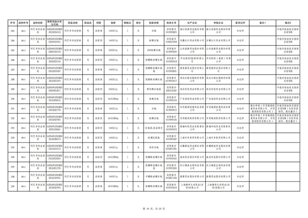 另外,有8个品种中选企业数超过10家,其中利巴韦林注射剂最多,高达46家企业中选。
