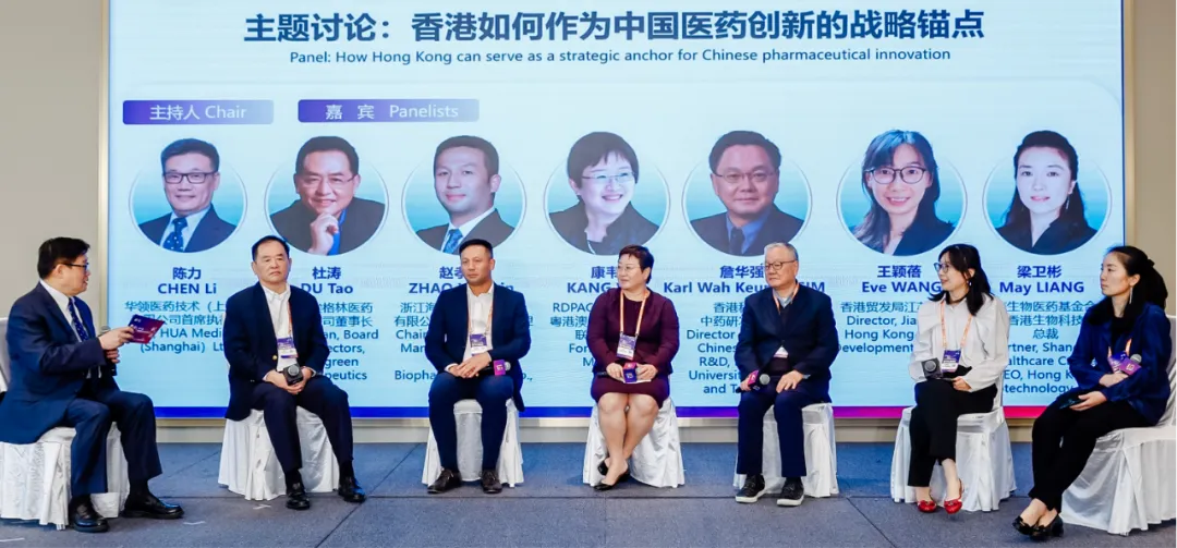 主题讨论环节“香港如何作为中国医药创新的战略锚点”由陈力博士主持,深圳埃格林医药有限公司董事长杜涛,浙江海昶生物医药股份有限公司董事长、总经理赵孝斌,RDPAC