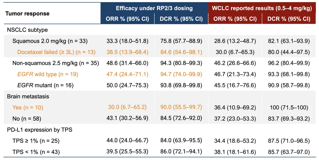 pct),在PD-L1阴性(TPS<1%,n=43)患者群体中,ORR为39.5%(+1.4pct),疗效不受PD-L1表达限制,有望覆盖更广泛的患者群体。
