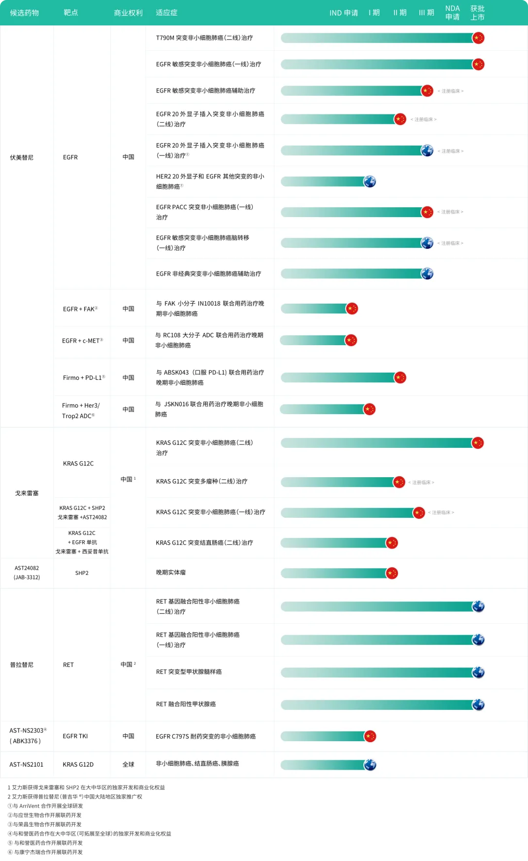 第四代EGFR抑制剂:面对第三代EGFR-TKI市场的激烈竞争,艾力斯早在2023年3月就从和誉医药引进了针对C797S突变的第四代EGFR抑制剂(AST2303)。虽然目前该药物仍处于一期临床阶段,但其研发进展顺利,有望为艾力斯在未来的市场竞争中提供新的增长点。