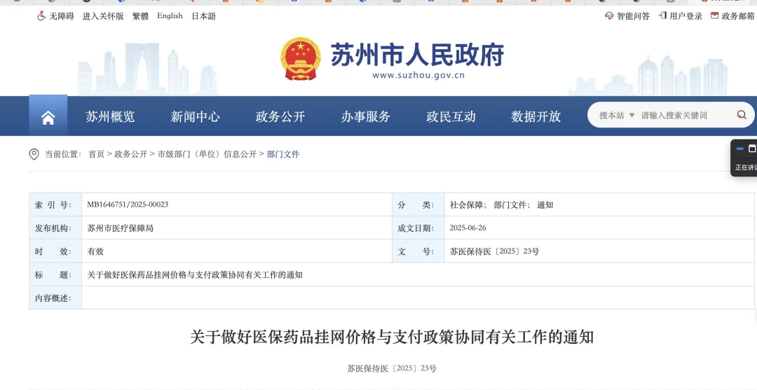 非集采、非国谈的“两非”高价药品,显然是苏州监管的重点。这一系列的动作被定位为医保药品挂网价格与支付政策的协同机制——没有支付标准的药品,必须实现挂网价格的合理回归。