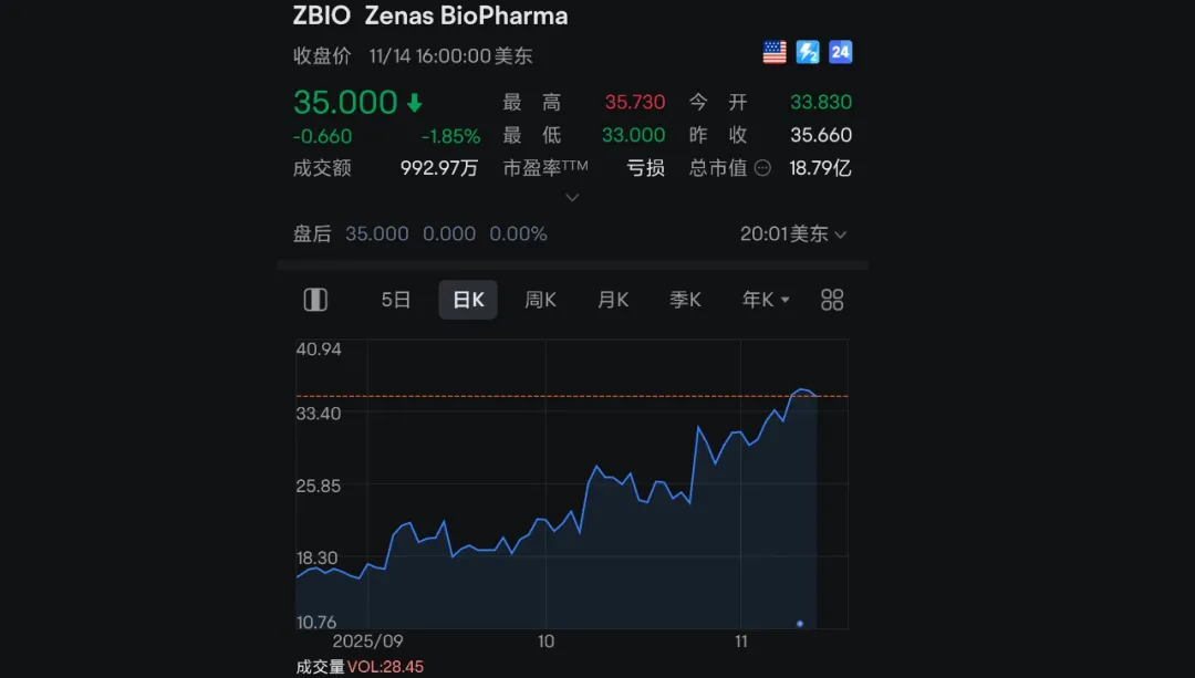 这笔交易总价超过20亿美元,由首付款和远期收益两部分构成。其中,1亿美元的首付款及近期里程碑付款确定性相当高,此外,700万股的Zenas股票更引人瞩目。按当前市价估算,这部分股权价值已超2亿美元。这种“现金+股权”的组合收益模式,为诺诚健华带来了即时的资金补充和潜在的股权增值空间。