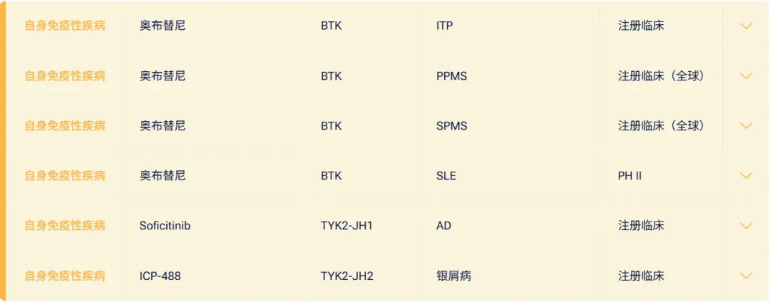 (诺诚健华自免领域布局,摘自公司官网)