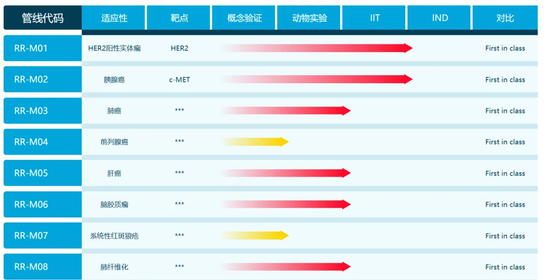 依托自主研发的技术平台,鲲石生物已围绕实体瘤、慢性病等重大疾病领域布局多条临床前管线。其中,针对 HER2 阳性实体瘤的 RR-M01 管线进展领先,该研究已入组过半,均展现了良好的安全性和初步的有效性。