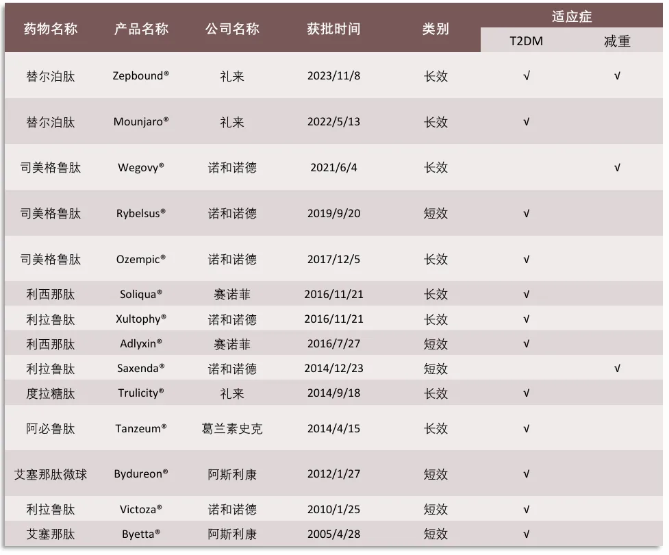 图示:获FDA批准上市的GLP-1RA药物