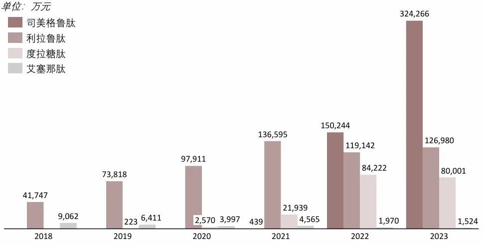 图示:中国公立医院GLP-1RA糖尿病适应症主要产品销售情况