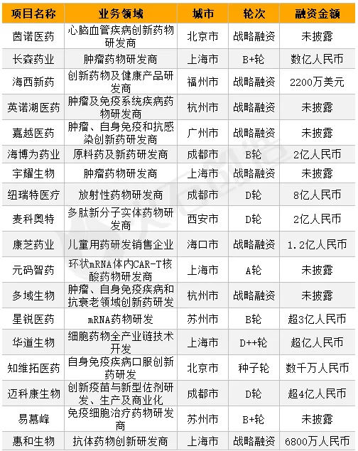 10月,创新药领域的融资活动延续了近期的活跃态势。据火石创造不完全统计,当月创新药领域有18家企业完成融资,涵盖免疫治疗、细胞治疗、mRNA药物、放射药物等多个细分领域。