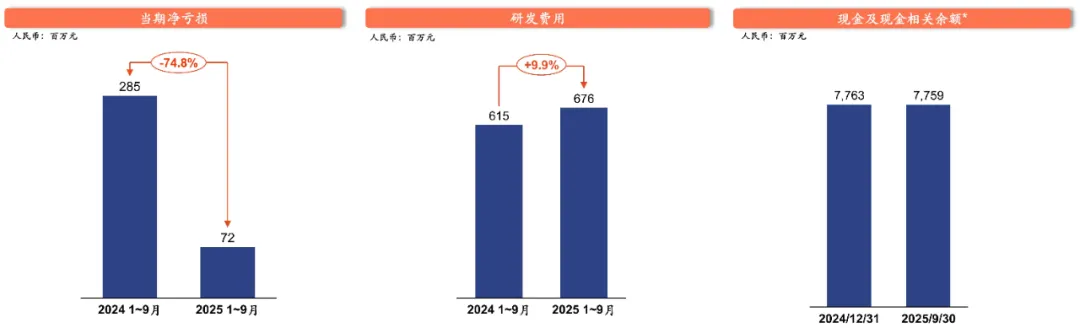 诺诚健华2025年1~9月净亏损、研发费用、现金情况