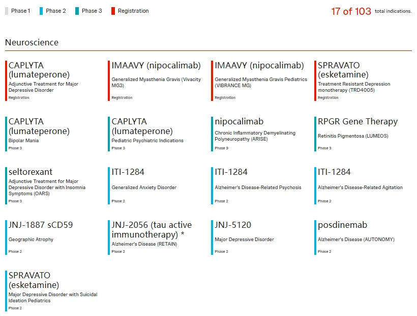 图:强生神经科学领域管线