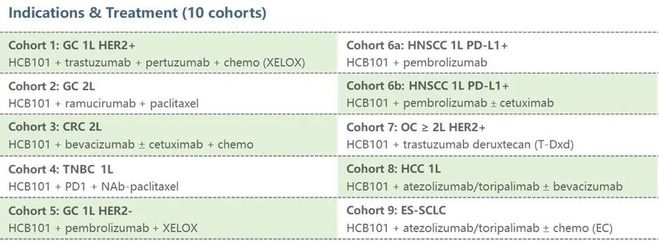 图5. HCB101-201 Phase 1b/2期联合试验涵盖10个队列