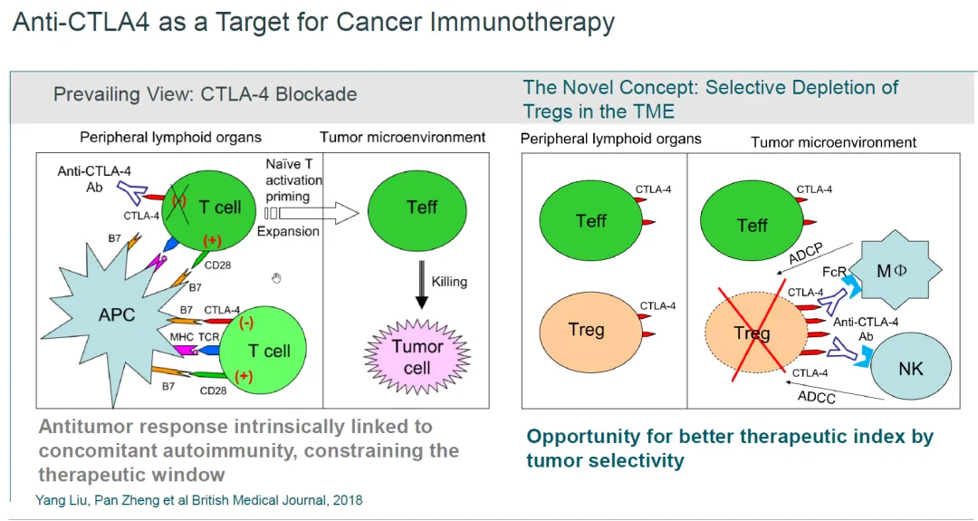 目前,全球获批的CTLA-4单抗仅有两款,分别是百时美施贵宝的Ipilimumab(Y药)和阿斯利康的Tremelimumab。而安全性问题是制约CTLA-4抗体发展的核心瓶颈之一。早期CTLA-4抗体的作用机制直接:通过无差别抑制削弱Tregs的免疫抑制作用,进而激活全身免疫反应。缺点就是无法区分肿瘤与正常组织中的Tregs,易引发严重的免疫相关不良反应(IrAEs)。