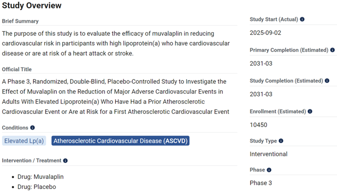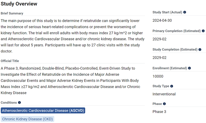 以礼来Lp(a)小分子Muvalaplin、阿斯利康PCSK9抑制剂、礼来GLP-1/GIP/GCG三靶点激动剂Retatrutide为例,ASCVD三期临床入组人数均在10000例以上,随访时间基本都在5年左右。