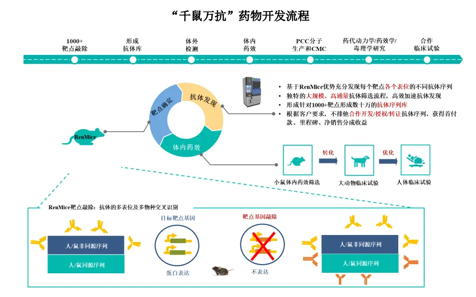 RenMice全人抗体小鼠:解决了“源头”问题。这种基因编辑小鼠产生的抗体无需进行复杂的人源化改造,结构与人类抗体一致,是真正“立等可取”的源头分子。