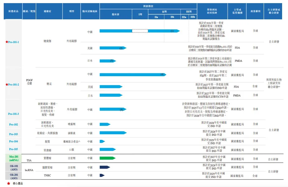 (i)用于治疗深二度烧烫伤的Pro-101-1,已完成IIb期临床试验的统计数据分析,用于治疗浅二度烧烫伤的,已完成最后一例患者出组,惟统计数据暂未得出;